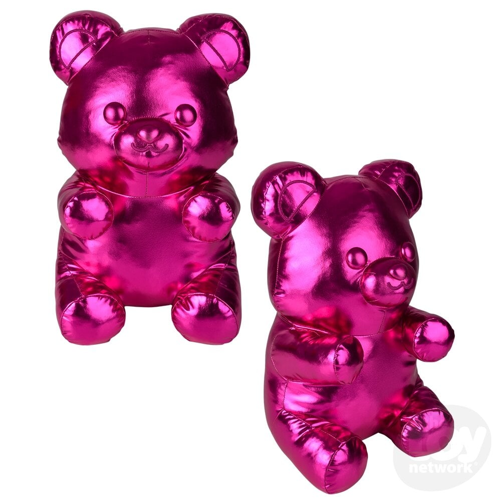 Add a sweet touch to your bedroom with our Pink Metallic Yummy Bear plush pillow. Sold by the piece. Each piece with a sewn-in label and hang tag.